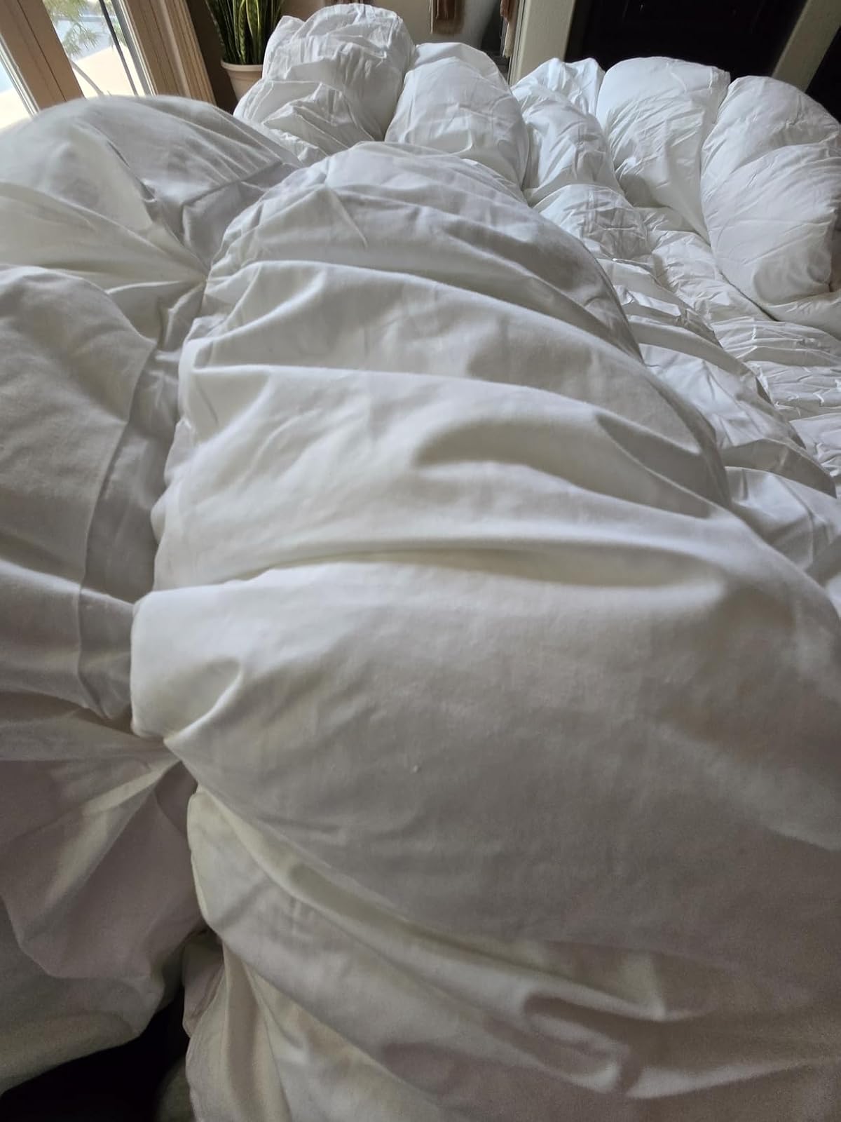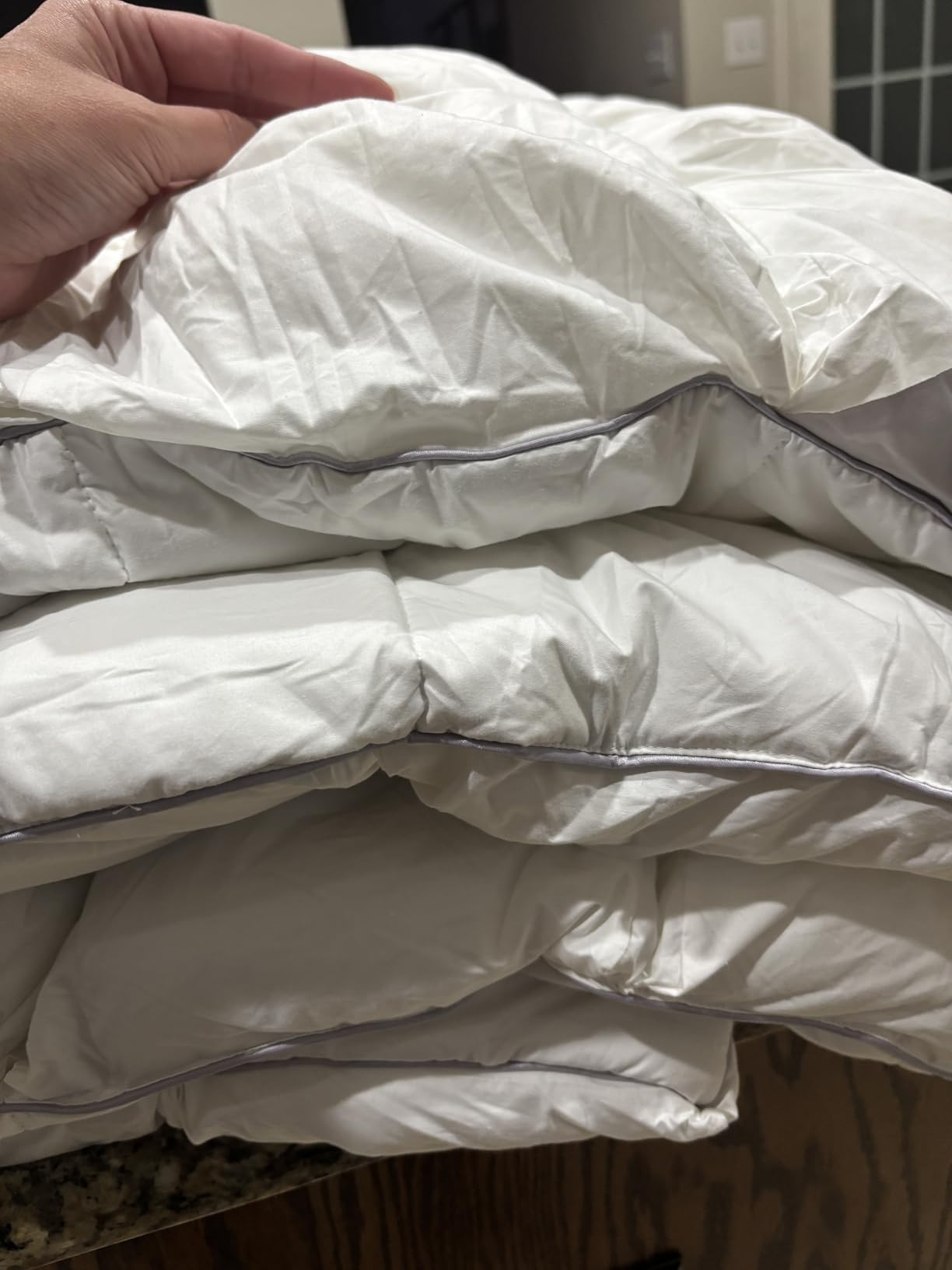 This hybrid blanket is so plush and comfortable and just so pleasing to touch. The twin size is perfect for one person, and I love that it’s machine washable and dryable, which is a major plus, especially since it’s white and doesn’t have loops for a duvet cover. I’ll probably still try to use a light cover with it, but because it’s so fluffy and weighted, it might stay in place just fine, especially being the smaller size. The storage bag that comes with it is also really good quality and feels sturdy, which it needs to be because of the blanket’s weight, and it’s actually pretty easy to get the blanket back in the bag, especially if you fold and roll it up tightly first.
